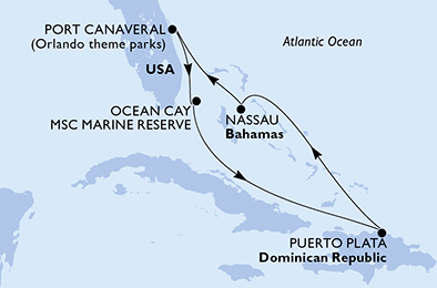 Port Canaveral > Ocean Cay > Puerto Plata > Nassau > Port Canaveral