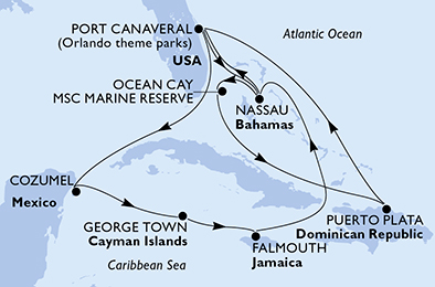 Port Canaveral > Cozumel > George Town > Falmouth > Nassau > Port Canaveral > Nassau > Ocean Cay > Puerto Plata > Port Canaveral
