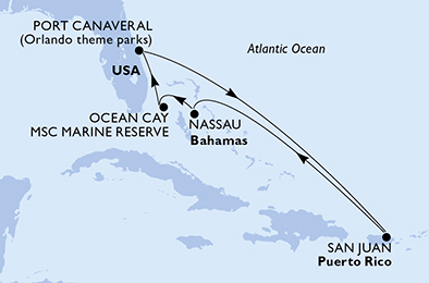 Port Canaveral > San Juan > Nassau > Ocean Cay > Port Canaveral