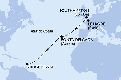 Southampton > Le Havre > Ponta Delgada > Bridgetown